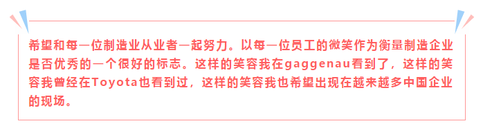 他山之石,可以攻玉。一天的工厂参访虽然短暂,但从不同的角度,从每个人所关心的问题出发,都可以找到不少值得细细推敲,慢慢回味之处。参观完Gaggenau工厂,我一直在思考一个问题,为什么他们员工的微笑那么自然、工作的时候大家都很有节奏感,发现问题的时候能积极的交流,为什么在现场呆了大半天我没有感觉工人好辛苦。
