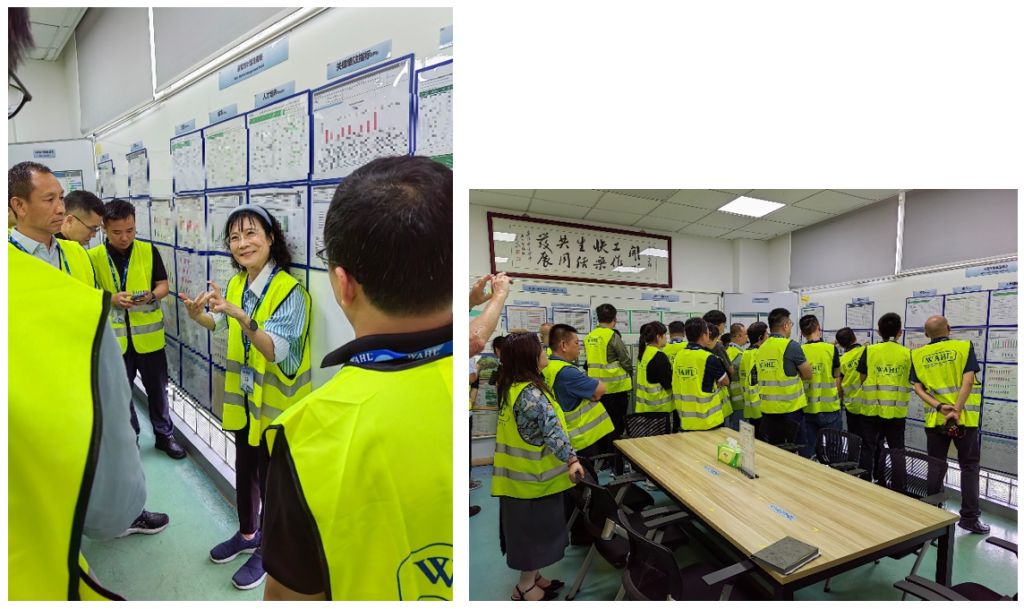 随后,大家步入战略室,现场听刘博士介绍和分享公司战略与运营方针的链接。通过华尔实践案例,了解到运营级方针的制定与管理机制,深入剖析KPI树分解与问题解决跟踪之间的逻辑关联。黄凯经理介绍了运营体系的日常管理之分层解决问题的三层会议体系及管理层的变点管理机制。钟黎经理同时也分享了Lean Office的在公司内部的职责与使命,通过精益办来撬动全公司的精益改善,精益人才培养,业务业绩推动,公司运营体系的建设等。